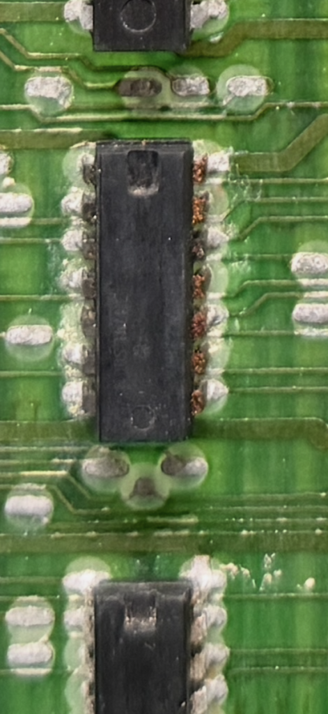 Bad sockets for the ROMs and CPU, so i will replace them. I will also have to remove most of the chips and put in sockets together with new chips. All RAMs and the CPU socket are now desoldered. 5 RAMs lost their legs during desoldering due to rust…